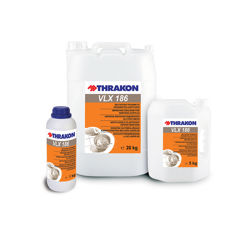 Το προϊόν VLX 186 είναι ένα ακρυλικό βελτιωτικό κονιαμάτων, χωρίς οργανικούς διαλύτες και είναι φιλικό προς το περιβάλλον. Συνίσταται για τη βελτίωση των ιδιοτήτων της κόλλας και του αρμόστοκου. Αυξάνει την συγκολλητική ικανότητα, μειώνει σημαντικά την απορροφητικότητα σε νερό. Χρησιμοποιείται και ως αστάρι αδιάλυτο για την τοποθέτηση πλακιδίων σε απαιτητικά υποστρώματα (παλιά πλακίδια, μάρμαρα, μωσαϊκό κλπ).