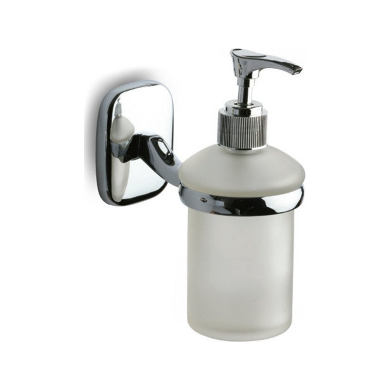 Δοχείο υγρού σαπουνιού γυάλινο HOTELERIE 7279. Η βάση του είναι κατασκευασμένη από ψευδάργυρο και φέρει επινικέλωση. Η τοποθέτηση του γίνεται επιτοίχια και έχει μεταλλική λαβή για καλύτερη αντοχή.