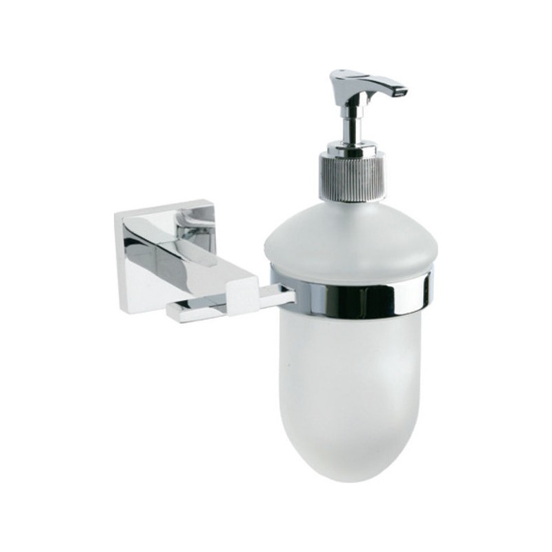 Δοχείο υγρού σαπουνιού γυάλινο LITO 33079. Η βάση του είναι κατασκευασμένη από μπρούντζο και φέρει επινικέλωση. Η τοποθέτηση του γίνεται επιτοίχια και έχει μεταλλική λαβή για μεγαλύτερη αντοχή.