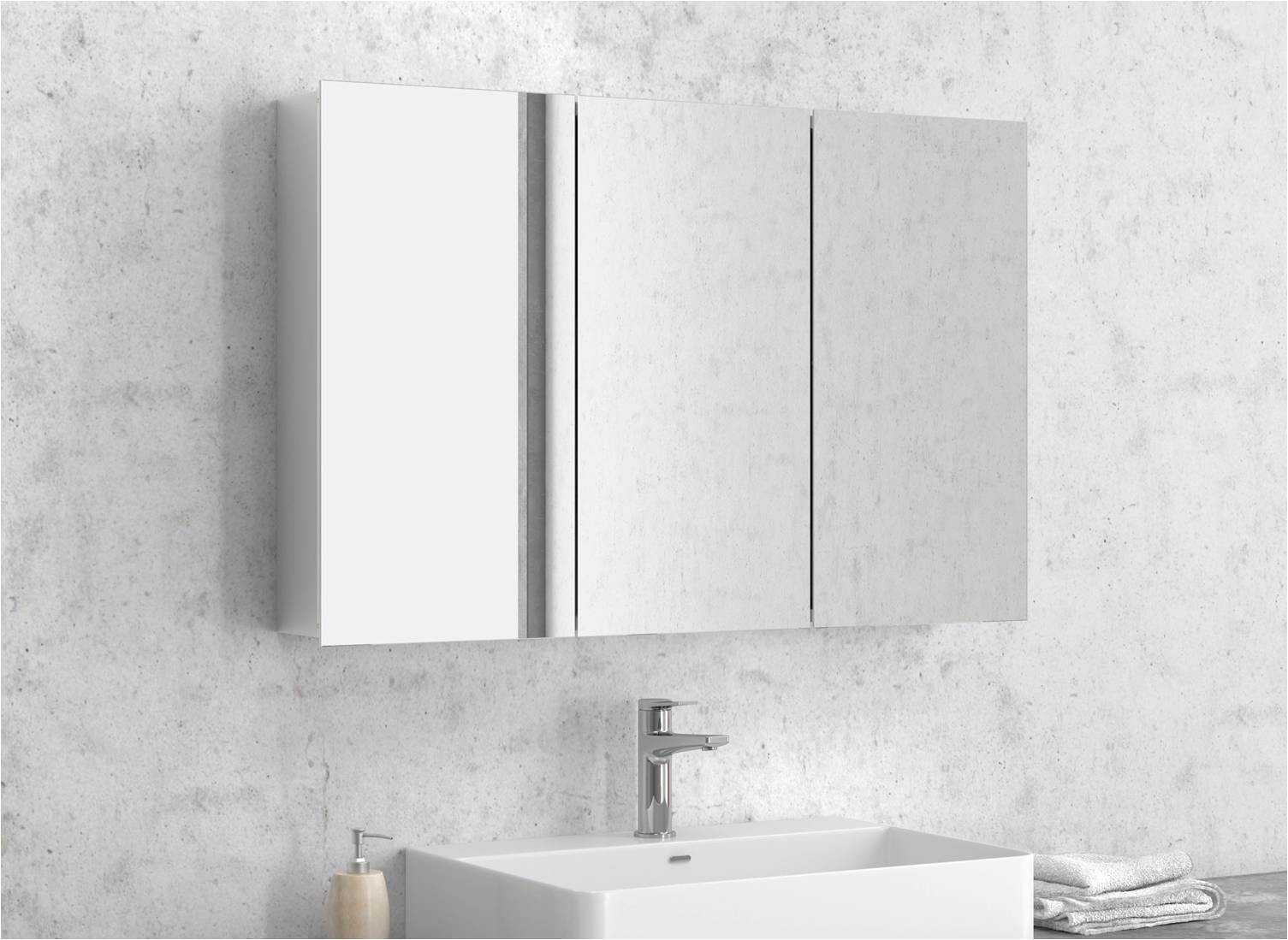 Καθρέπτης ερμάριο μπάνιου με τρεις πόρτες. Η κατασκευή του γίνεται από αλουμίνιο. Είναι ανθεκτικός στην υγρασία και έχει μεγάλη αντοχή. Η εργονομία του και το μοντέρνο του σχήμα το κάνει κατάλληλο για ξενοδοχεία αλλά και για οικιακή χρήση. Προσαρμόζεται εύκολα σε κάθε επιφάνεια του μπάνιου. Με κορυφαία ποιότητα υλικών και φιλικά προς το περιβάλλον.