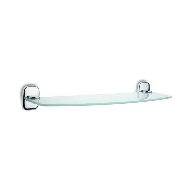 Επιτοίχια εταζέρα HOTELERIE από διάφανο γυαλί. Η βάσεις του είναι κατασκευασμένες από ψευδάργυρο και φέρουν υψηλή επινικέλωση. Ο μοντέρνος σχεδιασμός του το κάνει κομψό στολίδι για το μπάνιο.