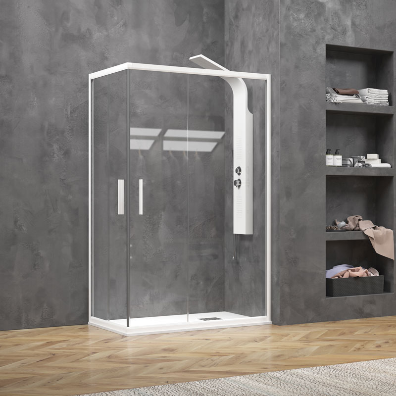 Καμπίνα EFE 100 με ένα σταθερό κρύσταλλο και μία συρόμενη πόρτα.