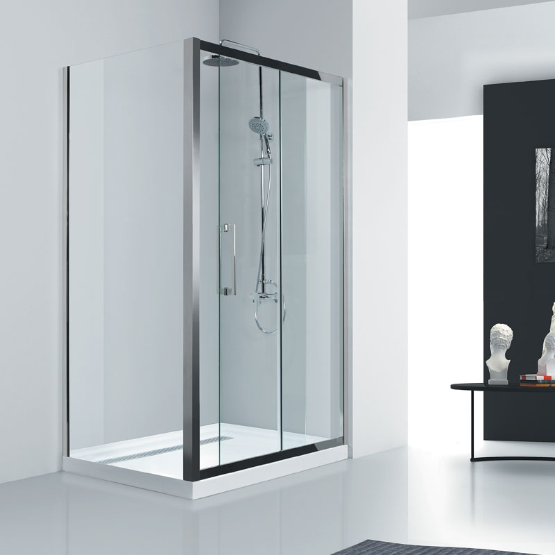 Καμπίνα ορθογώνια INOX 400 με τρία σταθερά κρύσταλλα και μία συρόμενη πόρτα.