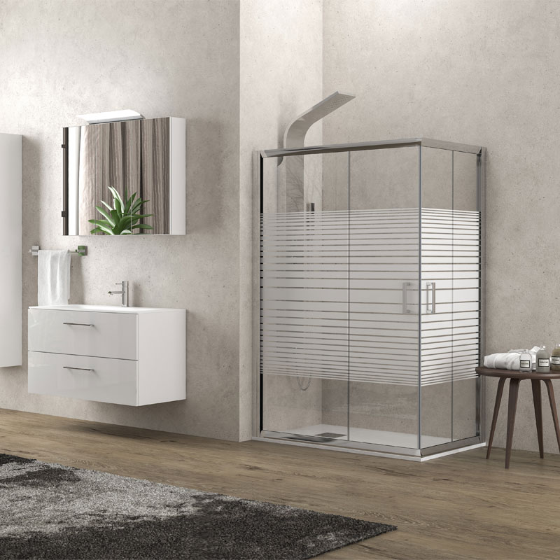Καμπίνα NEW FLORA 100 με δύο συρόμενες πόρτες και δύο σταθερά κρύσταλλα.