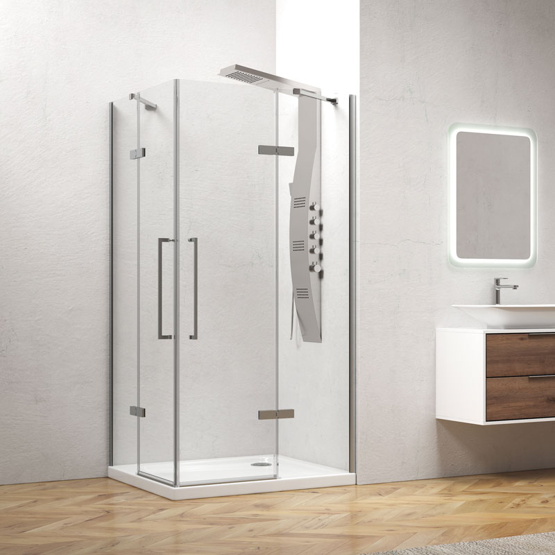 Καμπίνα TINOS 100 με δύο σταθερά κρύσταλλα και μία ανοιγόμενη πόρτα.