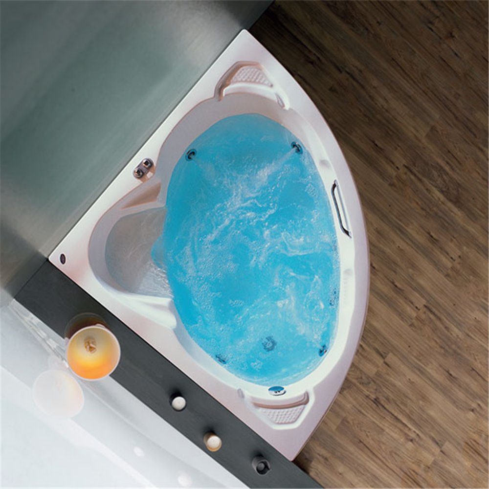 Μοντέρνας αισθητικής, συμμετρικό γωνιακό μπάνιο. Δεν περιλαμβάνονται η περιμετρική βάση και η εμπρόσθια ποδιά. Μπορεί να τοποθετηθεί σύστημα υδρομασάζ WINDY AIR