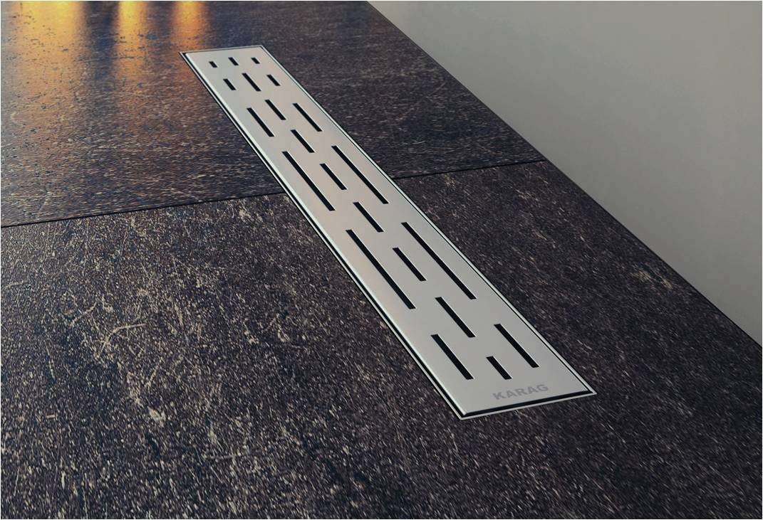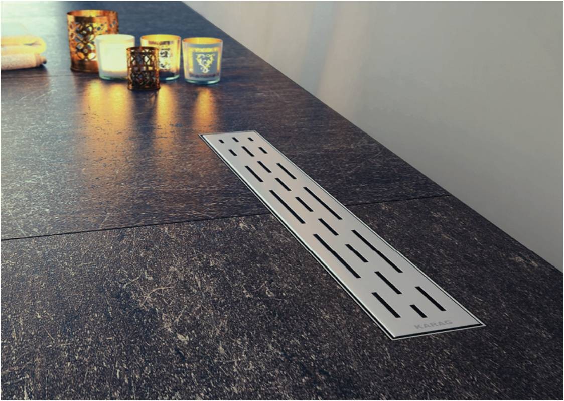 Σιφόνι δαπέδου ευθύγραμμο, χαμηλού προφίλ που καταλαμβάνει τον ελάχιστα δυνατό χώρο κάτω από το δάπεδο. Σχάρα κατασκευασμένη από ανοξείδωτο ατσάλι 18/10.