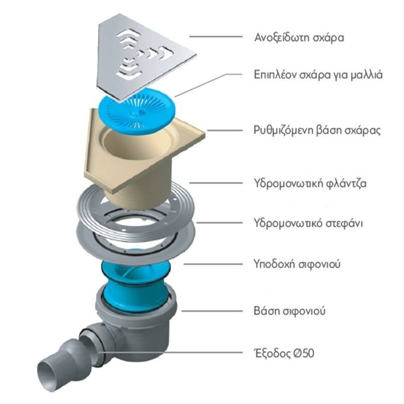 - Έξοδος Ø50 ρυθμιζόμενη προς όλες τις κατευθύνσεις